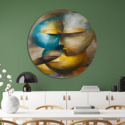 Abstracte moderne schilderij in Japandi stijl aluminium muurcirkel