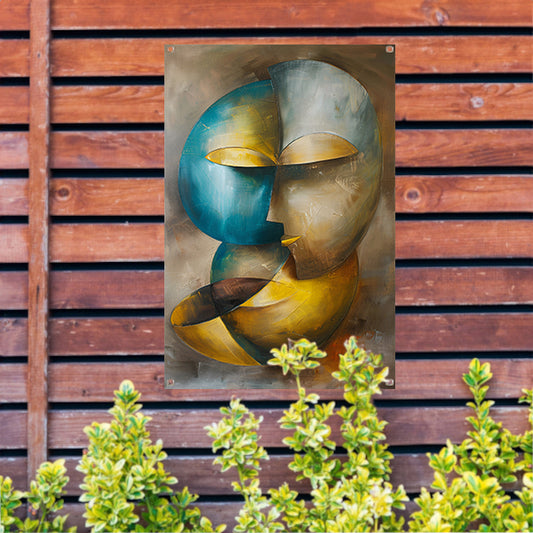 Abstracte moderne schilderij van een gezicht aluminium muurcirkel