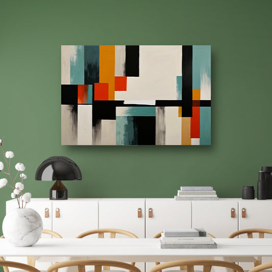 Abstracte moderne schilderij in Japandi stijl canvas met baklijst