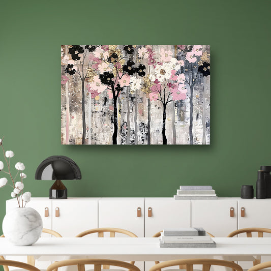 Abstracte moderne bomen met bloemen canvas met baklijst