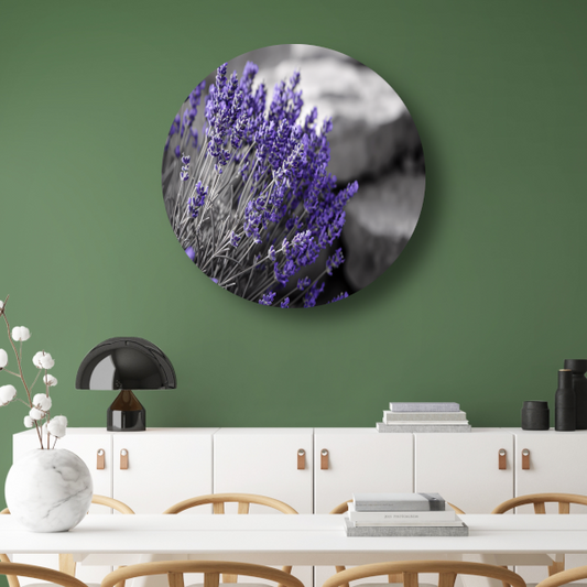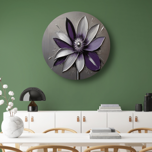 Abstracte Paarse Bloem met Zilveren Accenten aluminium muurcirkel