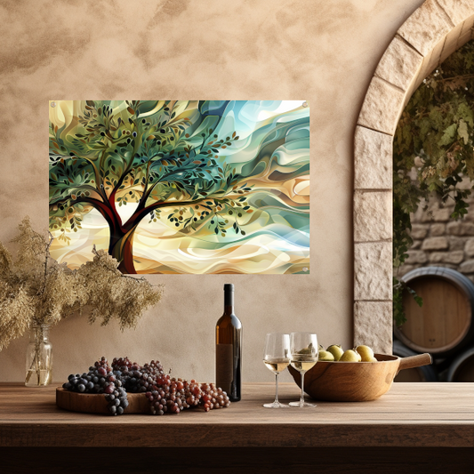 Abstracte Paarse Bloem met Zilveren Accenten tuinposter