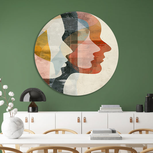 Abstracte Overlapping van Gezichten in Kleur aluminium muurcirkel