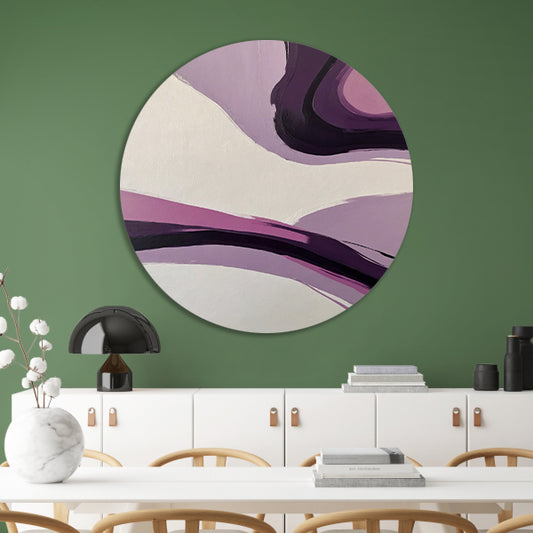 Abstracte Paarse Golven op Minimalistisch aluminium muurcirkel