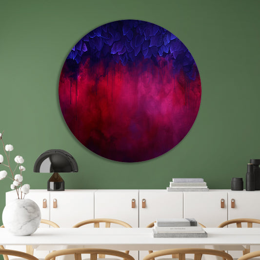 Abstracte paarse en rode rook met bladeren aluminium muurcirkel