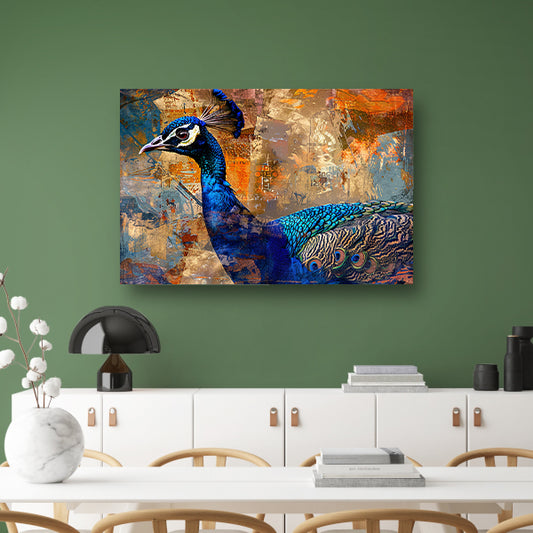 Abstracte pauw kunst met dynamische kleuren acrylglas