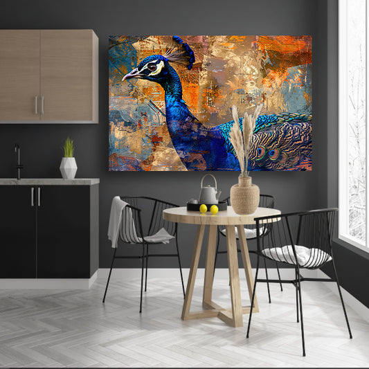 Abstracte pauw kunst met dynamische kleuren canvas met baklijst