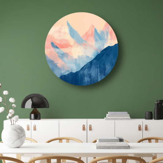 Abstracte pasteltinten van berglandschappen in zonlicht aluminium muurcirkel