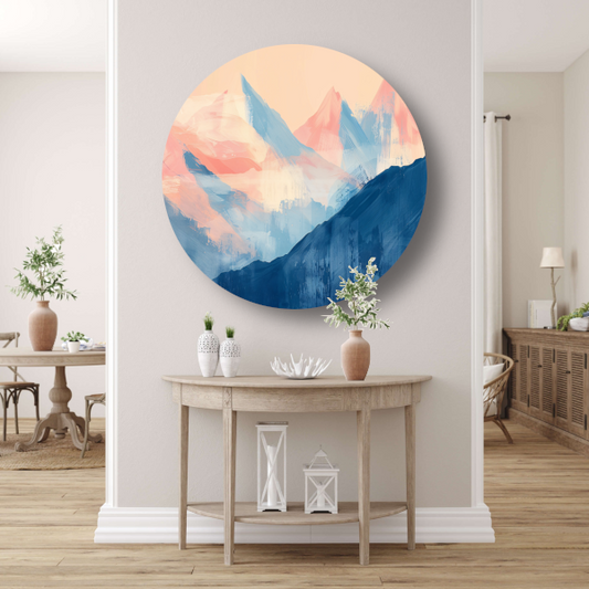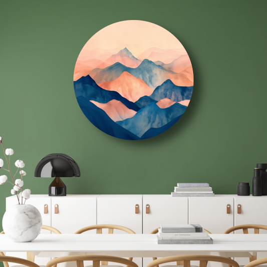 Abstracte Pastelkleurige Bergen in Harmonieuze Golven aluminium muurcirkel