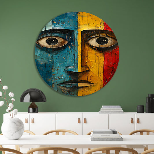 Abstract emotie in blauw, geel en rood forex muurcirkel