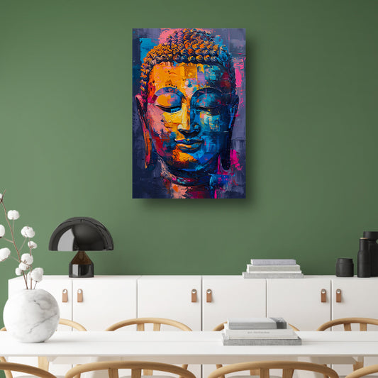 Abstract en kleurrijk Boeddha hoofd schilderij canvas