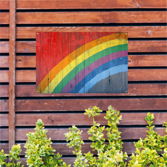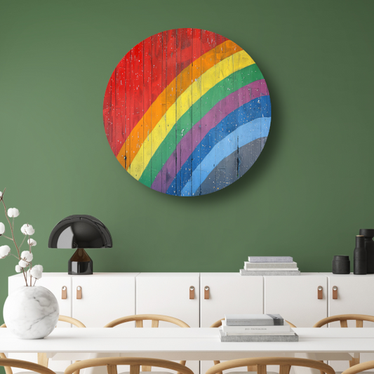 Abstracte Regenboog op Houten Paneel aluminium muurcirkel