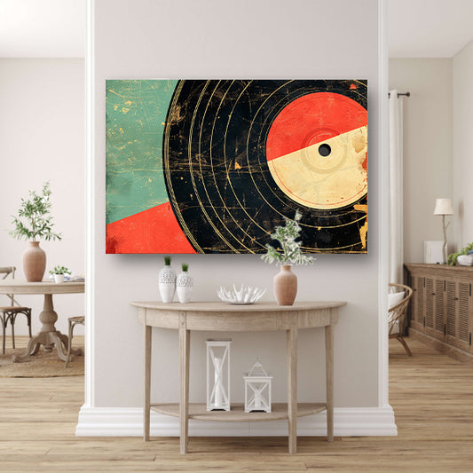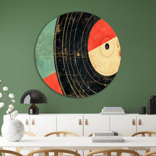 Abstracte retro vinyl kunst met patronen forex muurcirkel