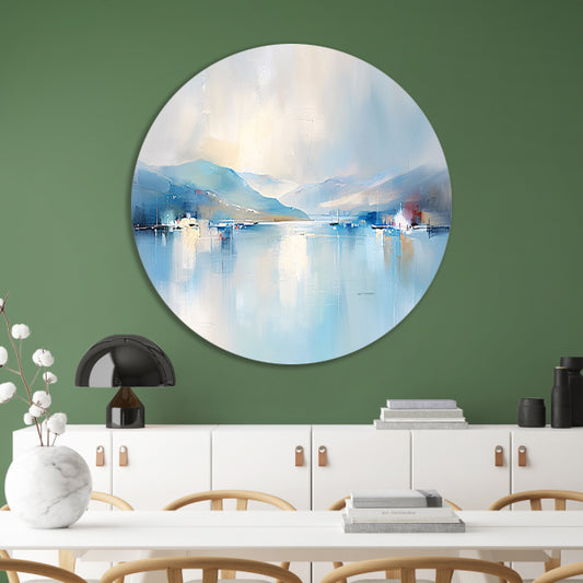Abstracte rivierlandschap in zachte pastelkleuren aluminium muurcirkel