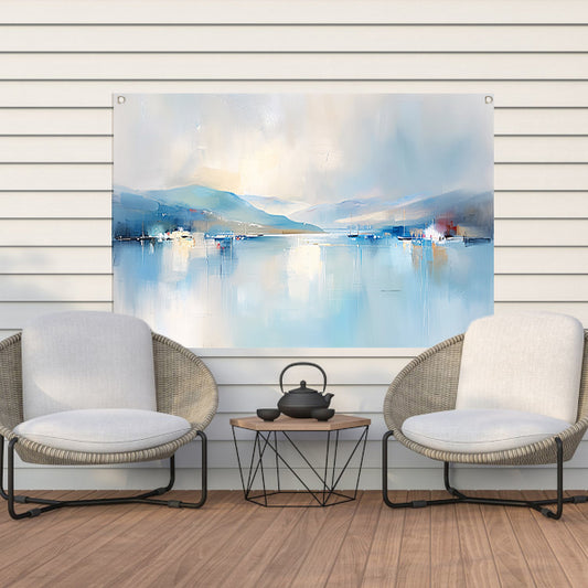 Abstracte rivierlandschap in zachte pastelkleuren tuinposter