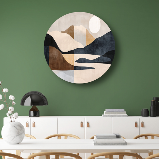 Abstracte Rivierlandschap in Aardetinten Monochrome Kunst forex muurcirkel
