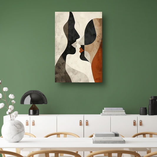 Abstracte samensmelting van vormen en gezichten canvas met baklijst