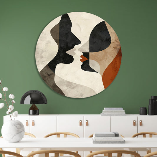 Abstracte samensmelting van vormen en gezichten aluminium muurcirkel