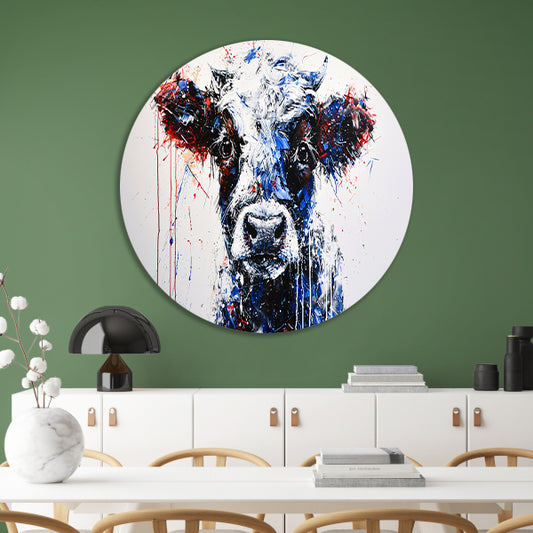 Abstracte schilderij van dynamische koe aluminium muurcirkel