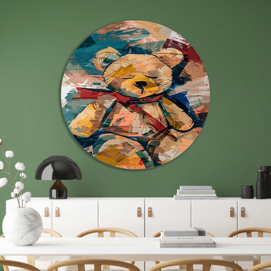 Abstracte Schilderij van een Teddybeer met Sjaal forex muurcirkel