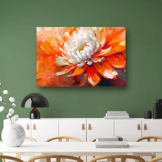 Abstracte schilderij van een oranje en witte bloem canvas met baklijst