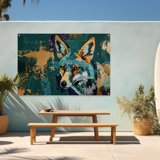 Abstracte schilderij van een vos in kleur tuinposter