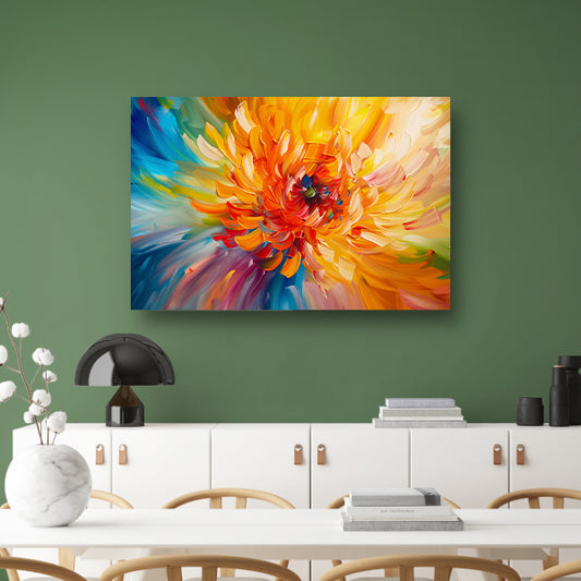 Abstracte schilderij van kleurrijke chrysant canvas met baklijst