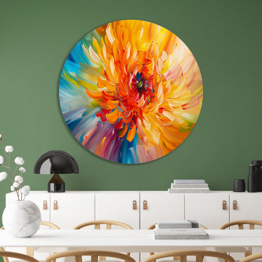 Abstracte schilderij van kleurrijke chrysant aluminium muurcirkel