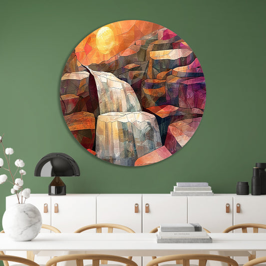 Abstracte schilderij van waterval bij zonsopgang aluminium muurcirkel