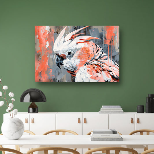 Abstracte schilderij van kleurrijke papegaai canvas met baklijst