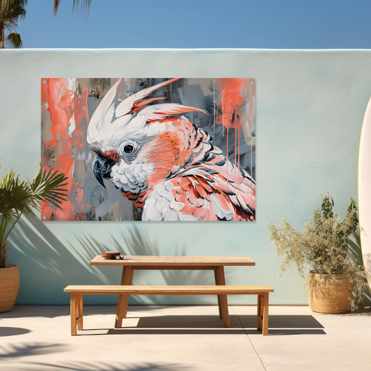 Abstracte schilderij van kleurrijke papegaai tuinposter
