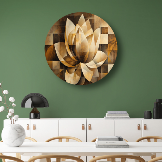 Abstracte Sepia Lotus Kunstwerk aluminium muurcirkel