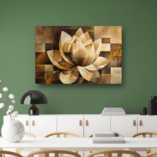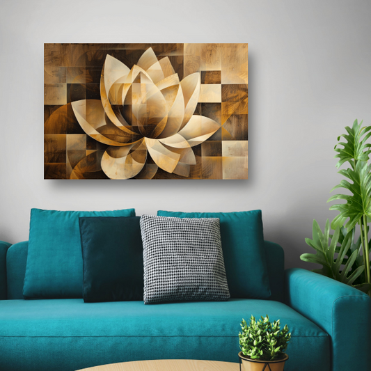 Abstracte Sepia Lotus Kunstwerk canvas met baklijst