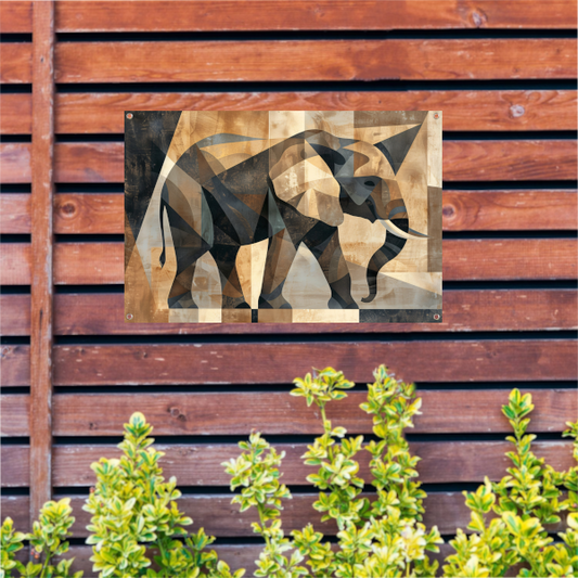 Abstracte Sepia Geometrische Olifant Kunst tuinposter