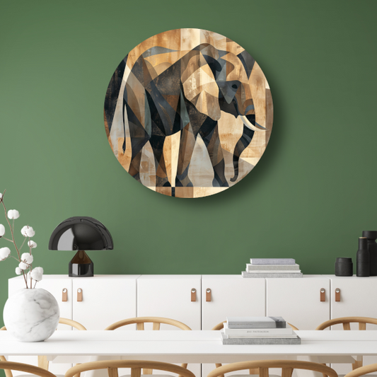 Abstracte Sepia Geometrische Olifant Kunst forex muurcirkel