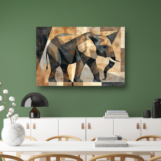 Abstracte Sepia Geometrische Olifant Kunst canvas met baklijst