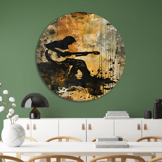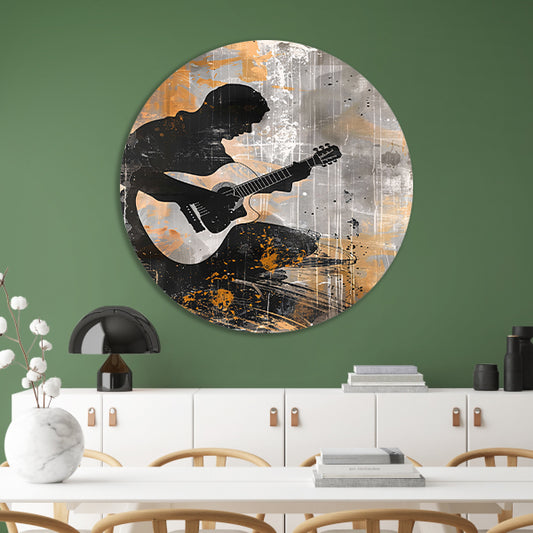 Abstracte Silhouet van Gitarist met Gitaar forex muurcirkel