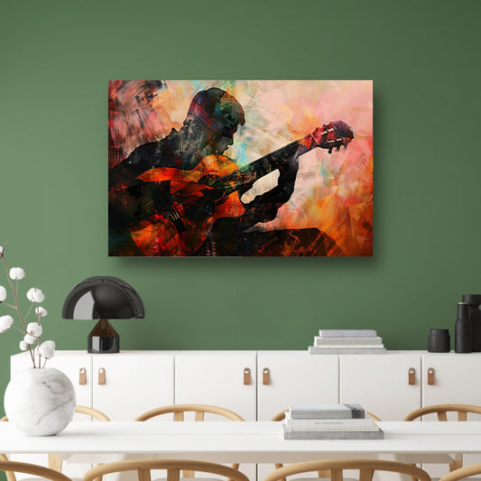 Abstracte Silhouet van Gitarist met Gitaar canvas