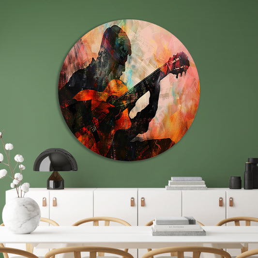 Abstracte silhouet van gitarist in kleur forex muurcirkel