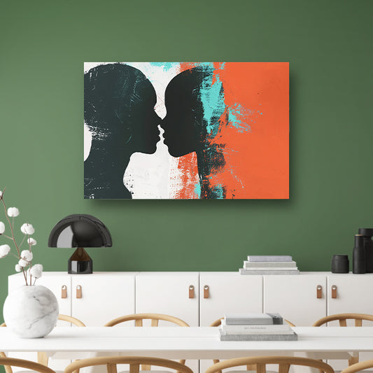 Abstracte silhouetten van een koppel in kleur canvas met baklijst
