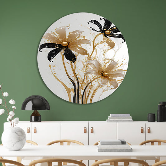 Abstracte Silhouetten van Gouden Bloemen aluminium muurcirkel