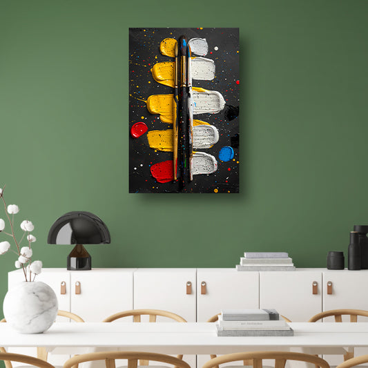 Abstract Expressie met Verf en Kwasten canvas met baklijst