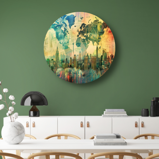 Abstracte stad in dynamische kleuren schilderij forex muurcirkel