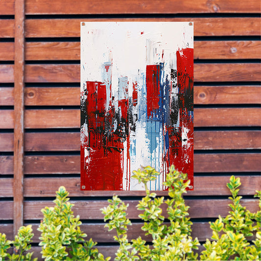 Abstracte stad in dynamische kleuren schilderij tuinposter