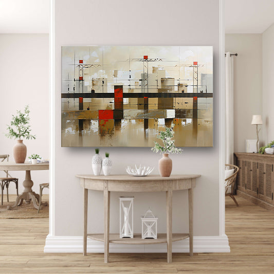 Abstracte stad met bruggen in aardetinten canvas