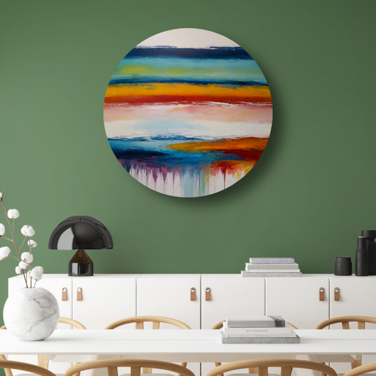 Abstracte Symfonie van Kleurrijke Horizonten aluminium muurcirkel