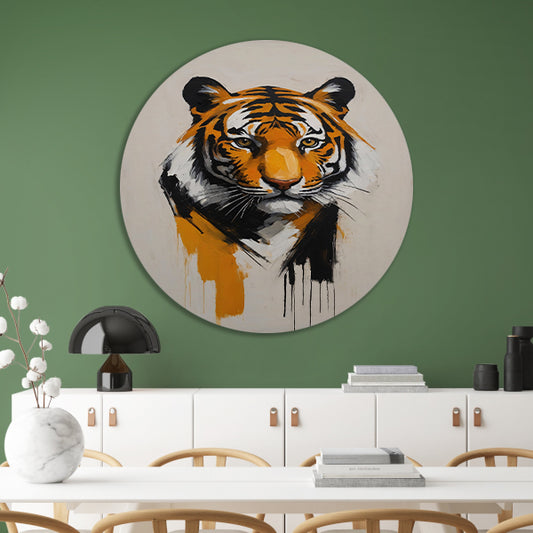 Abstracte Tijger in Moderne Kunstuitdrukking aluminium muurcirkel