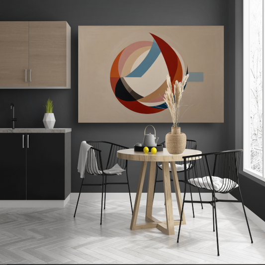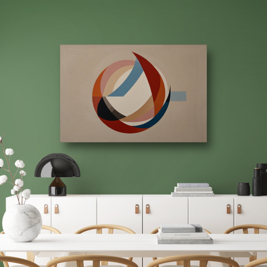 Abstracte symmetrie met cirkels en lijnen canvas met baklijst