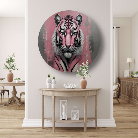 Abstracte Tijger in Roze en Zwart aluminium muurcirkel