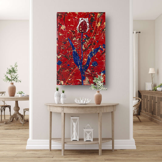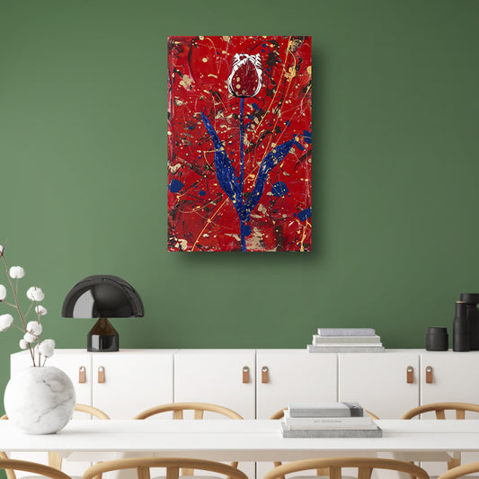 Abstracte tulp met dynamische verfspetters canvas met baklijst